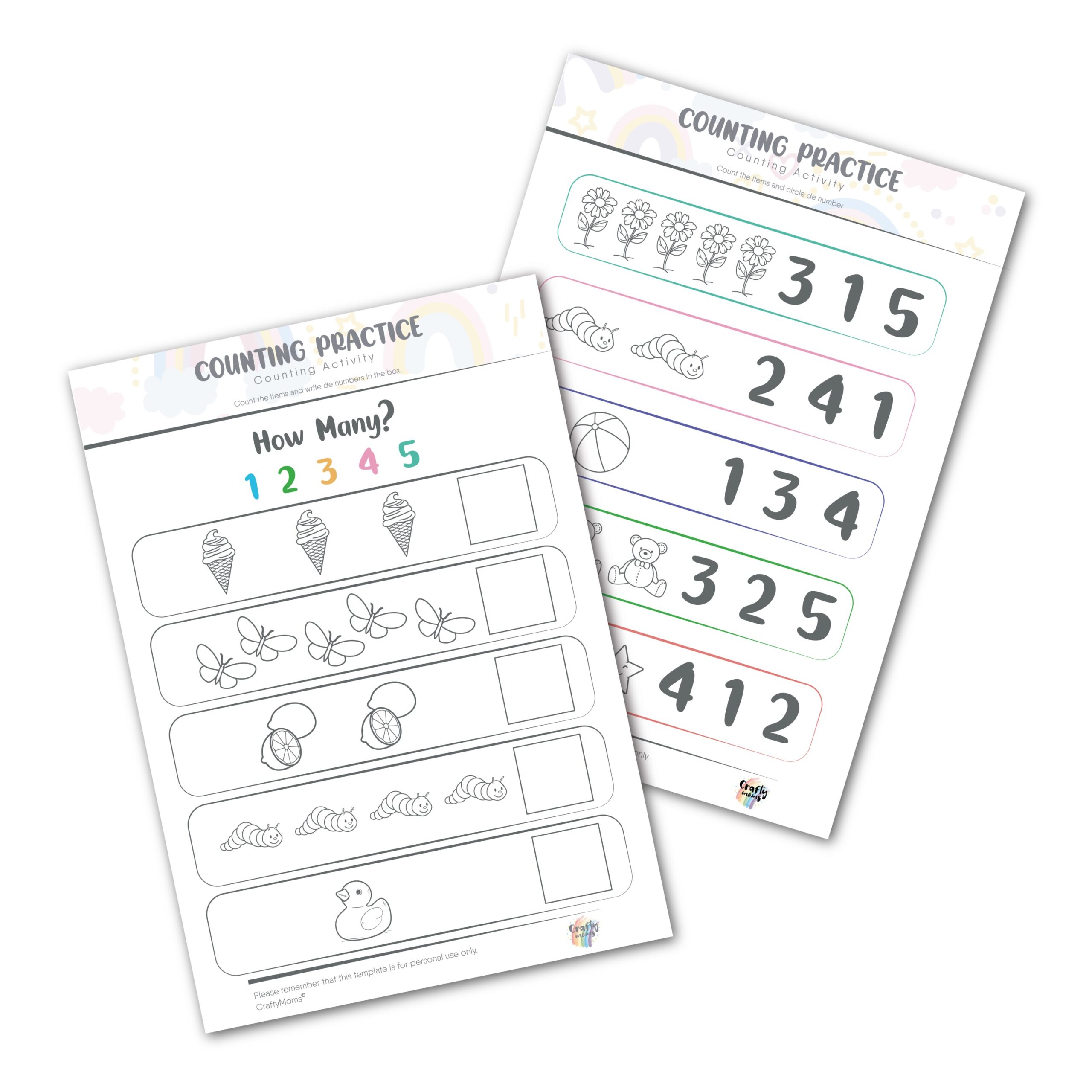 12 pages full of engaging activities that will help your little ones to recognize the numbers and practice counting. We also included some paint by color activities so they can have fun while they reinforce their math learning.
